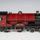 A Bassett-Lowke gauge O clockwork locomotive 'Duke of York' and tender 1931 in maroon and black livery (some playwear and paint chips, repair to cab handrail).