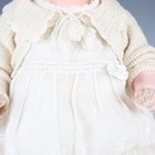 A German Porzellanfabrik Burggrub bisque head doll, impressed '169 7', with blonde wig, sleeping blue eyes, open mouth showing upper teeth and bent limb composition body, height 60cm, clothed (no cracks or hairline cracks to head, some scratch marks to cheeks and neck, wear to fingers, arms, legs and torso).