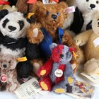 A good collection of modern Steiff teddy bears, including club editions and anniversary editions, some with certificates, keyrings, paper napkins and carry bags.