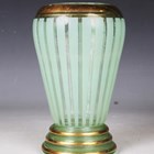 A pair of pink opaline French glass vases, early 20th century, of tapered oval shape on circular feet, enamelled and gilt to one side with flowers, foliage and scrollwork, height 30cm, together with a Vianne French glass vase and six press moulded vases in the form of hands holding cornucopia, height of tallest 30cm.