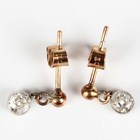 A pair of diamond single stone pendant earrings, each collet set with a cushion cut diamond, with post and gold butterfly fittings, each butterfly detailed '9ct', total diamond weight approx 0.40ct, length 1.1cm.