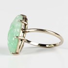 A white gold ring, claw set with an oval jade with carved and pierced decoration, detailed '9ct', weight 4.2g, ring size approx O1/2.
