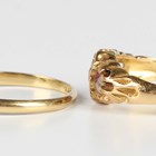 A gold and diamond single stone ring, collet set with a cushion cut diamond, detailed '18ct', ring size approx P, and an 18ct gold, ruby and diamond ring, Birmingham 1920, ring size approx M 1/2 (one ruby and one diamond lacking), total weight 4.1g.