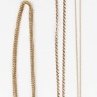 A 9ct gold St Christopher pendant, length 3cm, with a 9ct gold neckchain, length 42.5cm, a 9ct gold 'I love you' rotating pendant with a 9ct gold neckchain, total weight 18.3g, and a pendant with a gold neckchain, weight 0.8g.