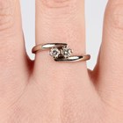 A white gold and diamond two stone ring, claw set with circular cut diamonds in a crossover design, detailed '18ct', weight 3.6g, ring size approx O1/2, with a case.