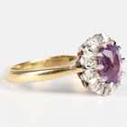 An 18ct gold, amethyst and diamond oval cluster ring, London 1969, weight 4.2g, ring size approx L1/2.
