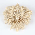 A Victorian seed pearl and mother-of-pearl brooch, width 4.5cm, with a case, a small quantity of opaque and semitranslucent varicoloured butterscotch coloured oval amber beads, weight 29.7g, a blue and colourless paste bead necklace and a small quantity of rock crystal beads.