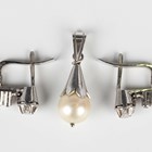 A pair of white gold, diamond and cultured pearl pendant earrings, each mounted with a row of three circular cut diamonds above a cultured pearl drop, with a single stone diamond set surmount, with post and folding fittings, unmarked, weight 7.4g, length 2.7cm, together with a similar white gold and single cultured pearl pendant, unmarked, weight 2.1g, length 2.5cm.