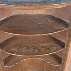 A George I burr walnut hanging bowfront corner cabinet, the crossbanded doors enclosing three oak shelves, height 99cm, width 70cm.