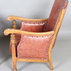 A pair of early/mid-20th century oak framed armchairs, upholstered in buttoned leatherette, height 90cm, width 63cm, depth 85cm.