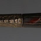 An 18th/19th century Sri Lankan piha kaetta knife with single-edged damascened blade, blade length 13cm, with scrolling carved and chased brass overlay and fuller, and carved horn/wood grip with brass flower stud decoration.