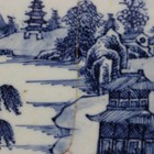 A group of six Chinese blue and white export porcelain meat dishes, Qianlong period, comprising four painted with coastal landscapes, another with two deer and pine tree and another with fenced garden, lengths ranging from 29.8cm to 46.2cm (all with faults).