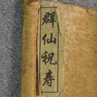 A Chinese table scroll, 20th century, decorated with a continuous scene of immortals amidst clouds and vapours within borders of black script and calligraphic text, 48cm x 361.5cm.