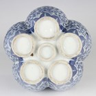 A Chinese blue and white porcelain crocus or tulip vase, late 19th century, the lobed bulbous body painted with lotus and scrolling tendrils, beneath five apertures and central narrow neck, height 25cm (repaired neck).