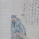 A group of four Chinese watercolour paintings on paper, late Qing dynasty, two depicting archers on horseback and the other two with two men kicking a ball, lines of black script and red seals to margins, 99.5cm x 43.5cm, framed and glazed.