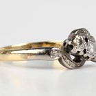A gold, platinum and diamond three stone crossover ring, mounted with circular cut diamonds, detailed '18ct & Plat', weight 3.1g, ring size approx L1/2.