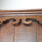 An 18th century and later oak dresser, the later shelf back fitted with a clock movement, the base raised on cabriole legs, height 209cm, width 136cm, depth 53cm.