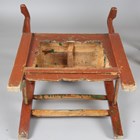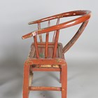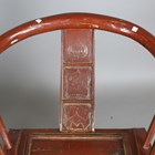 A pair of Chinese painted softwood armchairs with horseshoe backs and panelled seats, height 88cm, width 66cm.