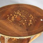 An early 20th century French foliate inlaid and gilt metal mounted oval two-tier occasional table, height 75cm, width 65cm, depth 42cm.