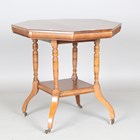A late Victorian walnut octagonal centre table, raised on turned legs and castors, height 70cm, width 73cm.