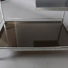 A late 20th century brushed steel and smoky glass trolley, height 71cm, width 81cm, depth 56cm. Provenance: from the estate of Jeannette and Wilfred Cass, Cass House, Goodwood, Chichester.