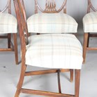 A set of four George III mahogany dining chairs with pierced splat backs and overstuffed seats, height 93cm, width 53cm.