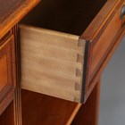 A 20th century reproduction yew wood open bookcase, fitted with two drawers, height 84cm, width 107cm, depth 31cm.