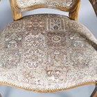 A pair of 20th century French beech showframe fauteuil armchairs, height 97cm, width 63cm, depth 63cm.