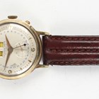 A Citizen gilt metal fronted and steel backed gentleman's calendar wristwatch with signed jewelled movement, the signed dial with gilt Arabic and arrowhead hour markers, day and month apertures, subsidiary seconds and outer date ring, the case back numbered '1307083', case diameter 3.3cm, on a brown leather strap.