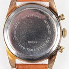 A Precimax chronograph gilt metal fronted and steel backed gentleman's wristwatch with Landeron 248 caliber movement, the signed silvered dial with two subsidiary dials, case diameter 3.7cm, on a leather strap.