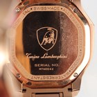 A Tonino Lamborghini gilt finished stainless steel cased gentleman's wristwatch, the signed triangular black and grey dial with three subsidiary dials and date aperture, the signed case back detailed 'RL5030D' and 'Serial No. MT6D042', the bracelet with foldover clasp, case width 4.8cm, cased, with instruction booklet, guarantee card and outer card box.