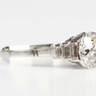 A platinum and diamond ring, claw set with the principal old cut diamond between graduated baguette cut diamond set three stone shoulders, unmarked, fitted with a 9ct white gold sizing band, weight 4.8g, principal diamond weight approx 2.00ct, ring size approx Q.
