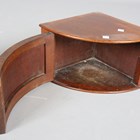 A pair of Victorian walnut footstools, diameter 28cm, together with a 19th century mahogany corner cabinet, width 38cm. Provenance: the property of Michael Godfrey.