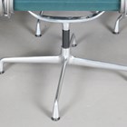 A set of six modern EA 108 cast aluminium framed revolving armchairs, made by Vitra and designed by Charles Eames, upholstered in green fabric, bearing paper maker's labels and cast serial number '938 138' to undersides, height 83cm, width 57cm.