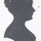 A group of six 18th and 19th century cut paper and ink profile portrait miniatures, including one ink portrait heightened in gilt, signed in pencil 'Bostock', 10cm x 8cm, within a pollard oak frame. Provenance: the property of Michael Godfrey.