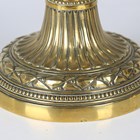 A pair of George III Neoclassical Revival brass candlesticks, the fluted stems cast with swags, raised on laurel leaf and beaded bases, height 28.5cm. Provenance: the property of Donald Church.