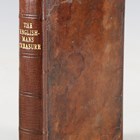 HERBAL. - Thomas VICARY. The Englishman's Treasure, With the True Anatomie of Mans Body… whereunto are annexed many Secrets appertaining to Chyrurgerie, with divers excellent approved Remedies for all Captaines and Souldiers, that travel either by Water or Land. London: by B. Alsop, and Thomas Favvcet, 1641. 4to (175 x 123mm.) Black letter, woodcut frontispiece, decorative and inhabited woodcut initials, and head and tail-pieces. (Leaves T2-T3 replaced in facsimile, paper repairs to two initial blanks, marginal damp-staining Q1-R1 and to margins of rear leaves, closed marginal tear to Kk4, occasional browning, marginal paper repair to last leaf Rr2, ink annotation to fourth blank and last leaf, history of the books repair in ink to rear pastedown.) Mid-20th century brown calf, original calf laid-on to both covers (endpapers replaced). Note: Thomas Vicary was an early English physician, described as 'but a meane practiser in Maidstone… that had gained his knowledge by experience, until the King advanced him for curing his sore leg'. Provenance: William Hoar (name inscribed on first blank); Richard Hoar (name inscribed to fourth blank); Thomas Hoar (gift inscribed to on the fourth blank).
