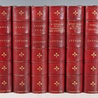 BINDINGS. - Edward George Earle Lytton BULWER-LYTTON. [The Works.] London: George Routledge & Sons, 1877-1878. 26 vols., 8vo (215 x 137mm.) (Toning, occasional light spotting.) Near contemporary red half morocco over marbled paper-covered boards, gilt lettering to spines, t.e.g. (light rubbing, occasional scuffing) (26).