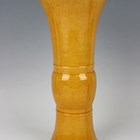 A Chinese yellow glazed porcelain beaker vase, late Qing dynasty, of flared slender form, height 29.5cm, together with a turquoise glazed bottle vase, height 15.5cm.