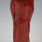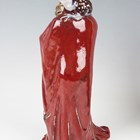 A Chinese Shiwan pottery sang-de-boeuf glazed figure of Liu Hai and his three-legged toad, 20th century, modelled standing wearing a long robe, impressed and painted marks to underside interior, height 30.8cm, together with two similar sang-de-boeuf glazed figures of immortals, impressed and painted marks, heights 34.5cm and 29.5cm.