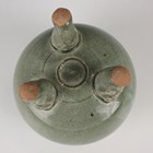 A small group of Chinese pottery, 20th century or later, including a Song style cream glazed jar and cover, height 12cm, a brown and white glazed bowl, diameter 12.5cm, and a celadon glazed jar on tripod legs, height 15cm (cracked).