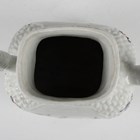 A Chinese famille rose export porcelain teapot and cover, late Qianlong period, the flattened baluster body painted with opposing figural panels, reserved against a moulded ground with scattered flowers, flanked by a simulated bamboo handle and spout, height 18.5cm (restored cover).