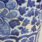 A Chinese blue and white porcelain vase, late 19th century, of baluster form, painted with flowers and four moulded lion masks to shoulder, height 37cm (repaired and lacking cover).