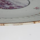 A set of six Chinese export porcelain plates, Qianlong period, each painted with a circular puce landscape vignette within scattered flower and green bellflower borders, diameter 23.5cm (minor rim chips).
