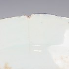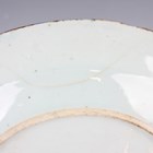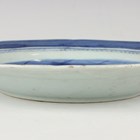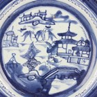 A Chinese blue and white export porcelain part service, early 19th century, each piece painted with a coastal landscape, comprising meat dish, length 31.4cm, four plates and three soup plates, diameters approx 22.5cm (some faults).