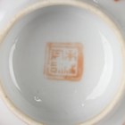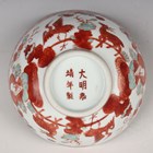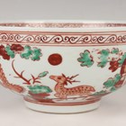 A pair of Chinese iron red decorated porcelain teabowls, early 20th century, each painted with bats, shou medallions, lotus and scrolling tendrils, diameter 9.8cm (one with hairline crack), together with a Chinese cinnabar lacquer vase, height 19.5cm (faults), a Satsuma vase, two Chinese porcelain bowls and a plate.