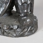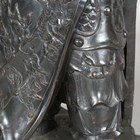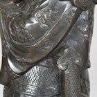A pair of Chinese hardwood figures of warriors, 20th century, each carved standing wearing dragon robes, carrying a sword and halberd, height 113cm.