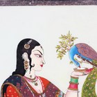 An Indian reverse painting on glass, late 19th/early 20th century, depicting a half-length portrait of a princess feeding a peacock, 49cm x 34cm, framed.