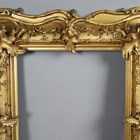 A 19th century carved, pierced and gilt wood frame of wide section, with foliate strapwork and acanthus leaf corner and centre crestings, rebate 49cm x 39m.