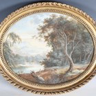 Italian School - Extensive Landscape View with Figure and Cow, a Town Beyond, oval late 18th/early 19th century watercolour with gouache, 24.5cm x 31.5cm, within a raked knull gilt composition frame. Provenance: the property of Donald Church.
